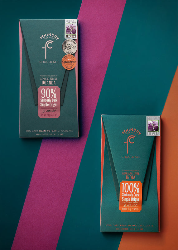 At Foundry Chocolate we celebrate and accentuate the remarkable personalities of the world’s finest cacao by crafting and aging micro-batches of award winning bean-to-bar craft chocolate from scratch – using only two ingredients: Cacao Beans and Organic Sugar - all from our little foundry just north of Auckland, New Zealand.